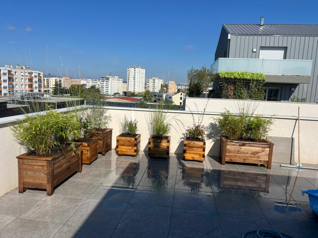 Au cours de l’automne, nous avons enchaîné plusieurs projets d’embellissement et de végétalisation de rooftops, rez-de-jardin et balcons d’appartements situés sur l’agglomération lyonnaise.