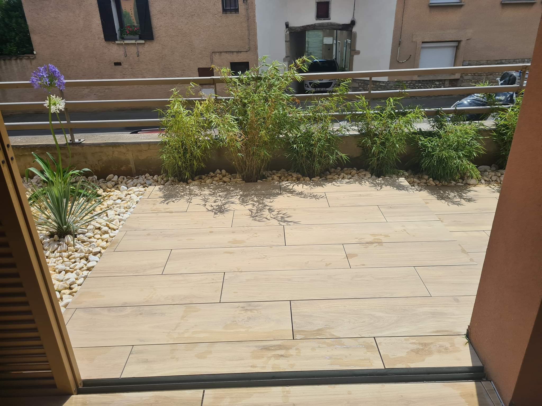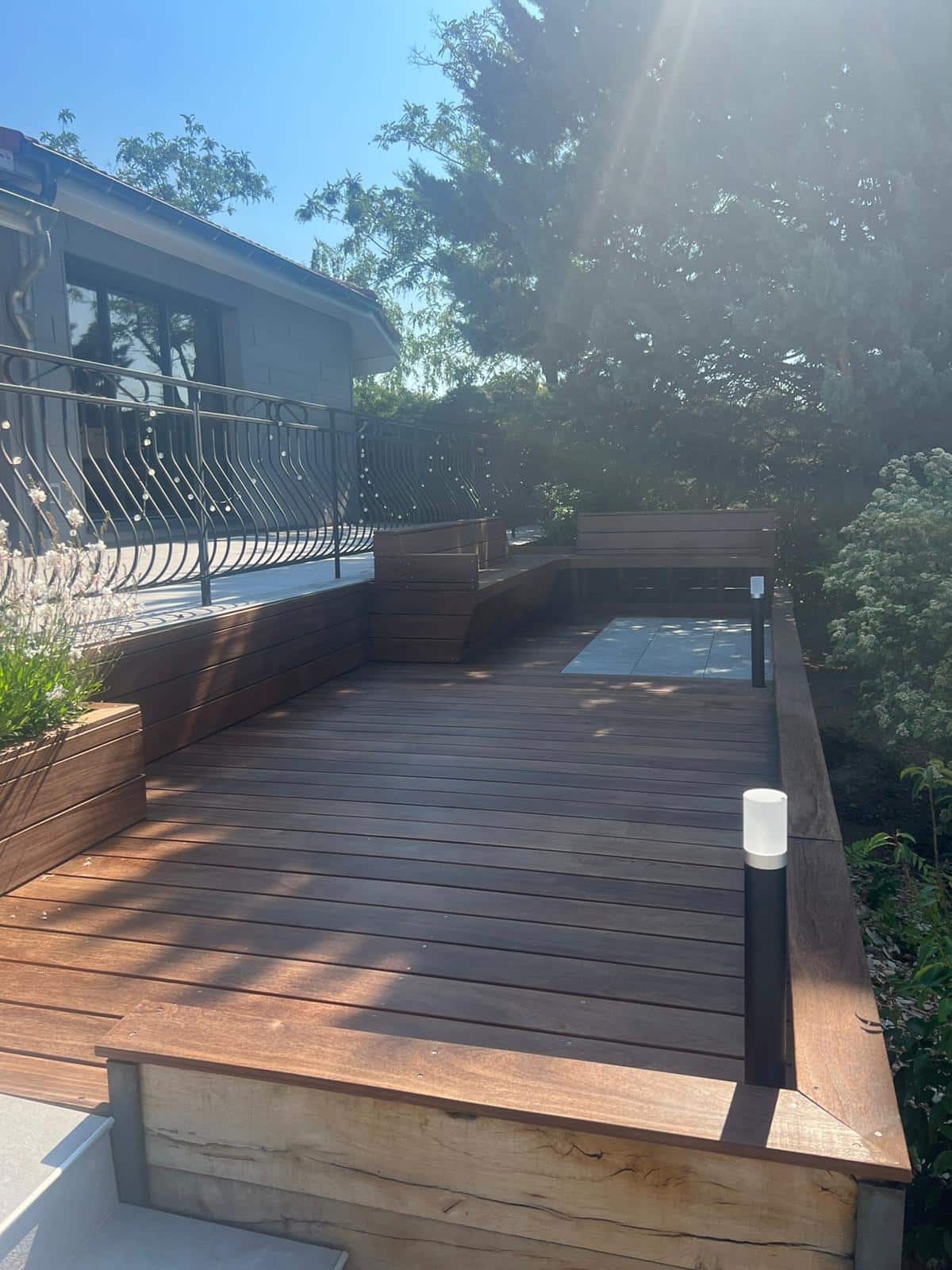Pour renforcer cette impression, nous conseillons souvent à nos clients de positionner son niveau au même niveau que le sol intérieur. Cela est souvent plus facile lorsque nous mettons en œuvre une terrasse sur plots réglables.